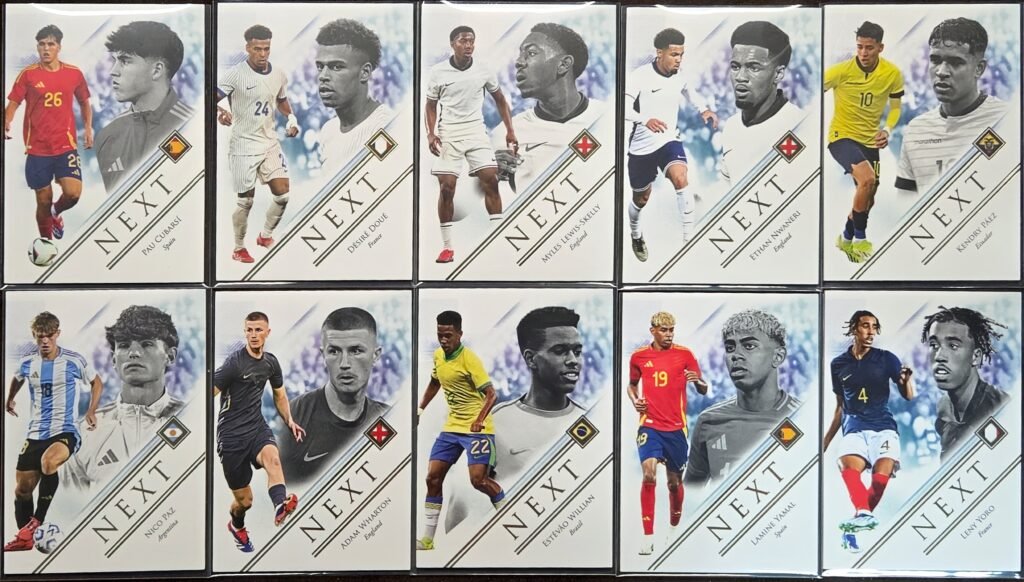 And for the chase? The “Next” set features the card every collector is hunting for: #99 Lamine Yamal. The set is anchored by “The Greats,” headlined by the two GOATs: #112 Lionel Messi and #116 Cristiano Ronaldo.